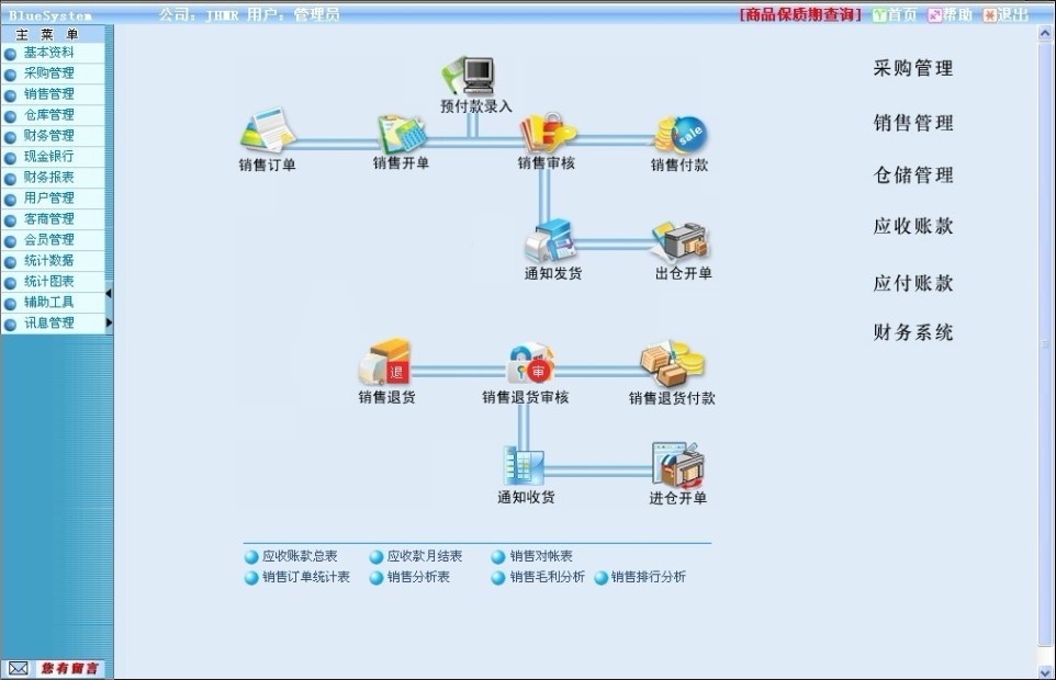 系统涉及:财务业务一体化系统|零风险财务系统|销售系统|采购系统|物流系统|费用系统|配送系统|成本核算系统|工资系统|担保系统|监控系统|库存管理系统|电话系统。。。